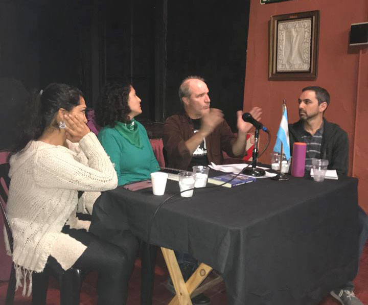Organizada por el Centro Cultural Raíces junto a nuestra revista, la actividad comenzó con una mesa-debate con intervenciones de trabajadores de distintas áreas de la cultura y de la ciencia: Virginia Soria, trabajadora despedida de la Biblioteca Nacional, Rodolfo Kempf, trabajador de CNEA y miembro de la comisión directiva de ATE, Silvia Nassif, investigadora despedida del CONICET, y Pablo Volkind, docente de historia del Instituto “Joaquín V. González”.