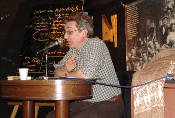 Foto inicial: Claudio Spiguel exponiendo en un curso de historia organizado por La Marea (Centro Cultural Raíces, CABA, 2008)