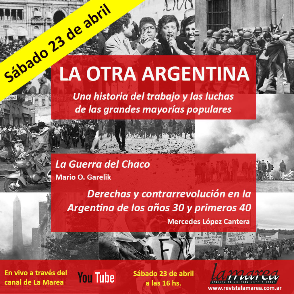 El próximo sábado 23 de abril a las 16 hs. La Marea transmitirá en vivo el panel correspondiente al Módulo 5 del curso de historia «La otra Argentina», coordinado por Cristina Mateu.