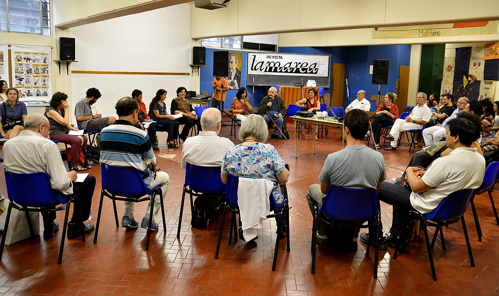 El pasado sábado 29 de noviembre la revista La Marea realizó una jornada cultural para celebrar su 20° aniversario. Fue en la Escuela de Psicología Social de Pichon-Rivière, de Capital, con numerosa y entusiasta participación de lectores, colaboradores e invitados especiales. La jornada, especialmente animada por jóvenes llegados de distintas ciudades como Rosario, La Plata o Tucumán, tuvo varias partes o momentos susceptibles de distinguir. Por la mañana se llevó a cabo la inscripción de quienes presentarían ponencias y se inauguró formalmente el evento con las cálidas palabras de bienvenida de la directora de la Escuela anfitriona, Ana Pampliega de Quiroga, y la breve reseña histórica de la revista que hicieron dos de sus directores, Josefina Racedo y Jorge Brega, además de la proyección un video que repasó ediciones y actos públicos de la publicación, incluyendo a modo de homenaje el recuerdo de colaboradores y amigos fallecidos como Libertad Demitrópulos, Joaquín Giannuzzi, Néstor Groppa, Suma Paz, Alberto Rex González, Eduardo Iglesias Brickles y Adrián Reyes.