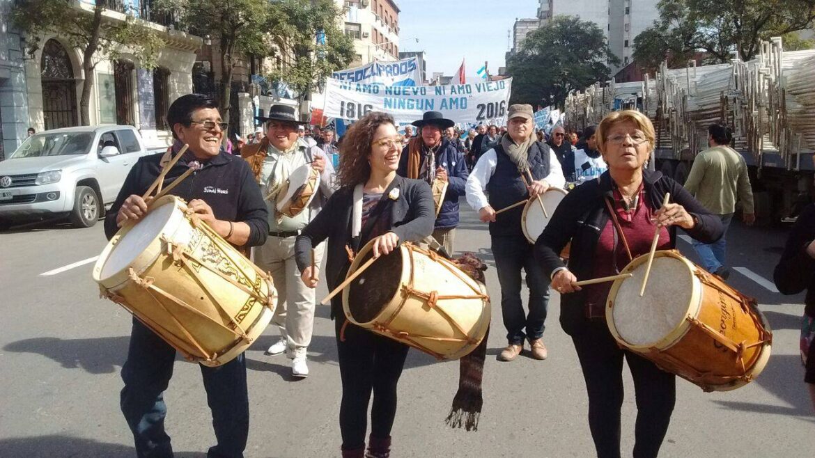 Foto inicial: Los bombos santiagueños en la Marcha. Aquí, Bruno Arias en el encuentro de Cultura Popular.